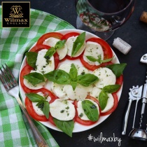 Такой простой и такой насыщенный салат или даже закуска! Съесть капрезе за бокалом вина в хорошей компании или даже в приятном одиночестве - это маленькое наслаждение! А ещё это блюдо не сложно повторить дома. Помидоры, моцарелла и базилик, тут и не надо уметь готовить! Главное подать капрезе красиво! Тогда и есть будет вкуснее! Для подачи яркого блюда используйте однотонную белую посуду. Посуда WILMAX как раз выполнена из белого фарфора мягкого молочного оттенка. Выглядит очень достойно и эффектно! На тарелке WILMAX разложите кружочки помидора, сверху выложите нарезанную моцареллу, полейте соусом песто и украсьте листиком базилика!