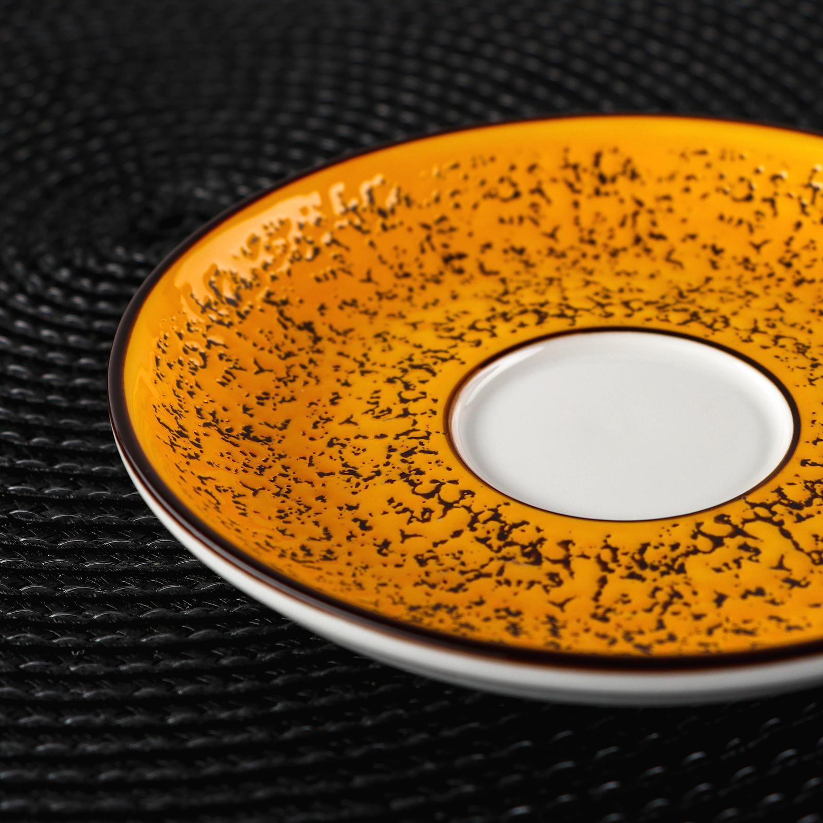 Блюдце диаметром 15см из коллекции Color Boom с декором Splash желтого цвета.