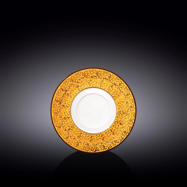 Блюдце диаметром 16см из коллекции Color Boom с декором Splash желтого цвета.