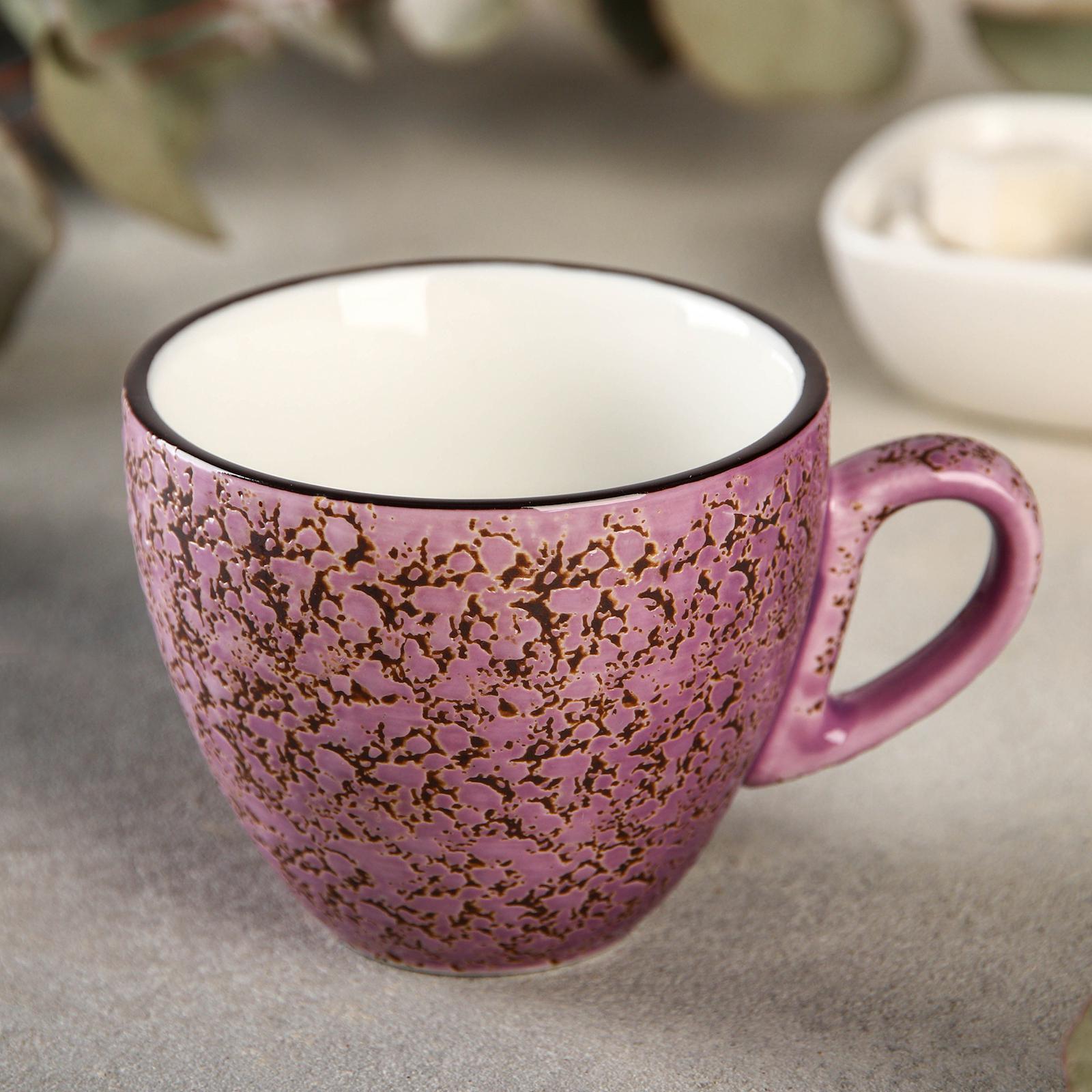 Чашка объемом 300мл из коллекции Color Boom с декором Splash лавандового цвета.
