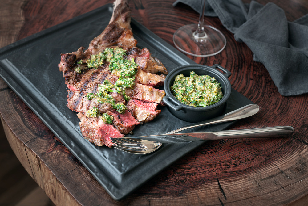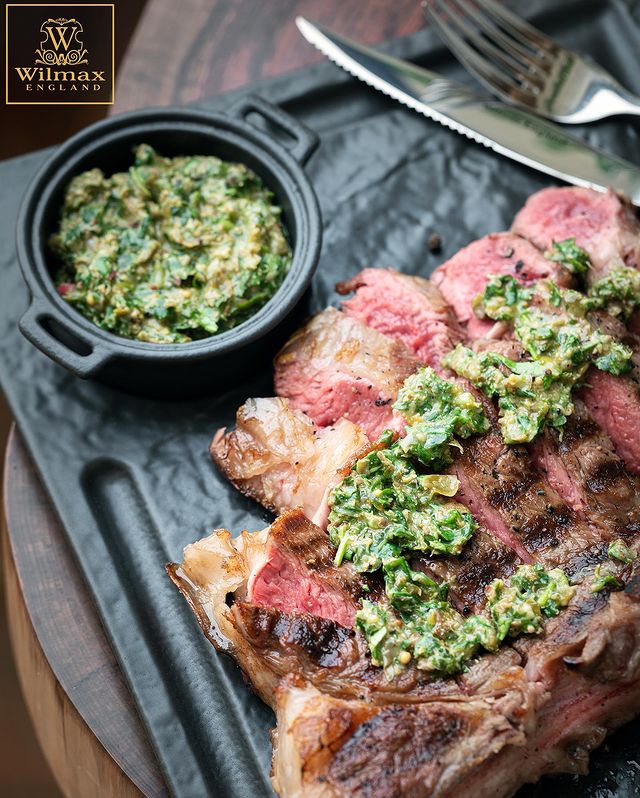 Черный соусник идеально подходит для блюда для стейка
