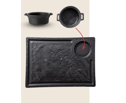Коллекция черной посуды Wilmax SlateStone - лучший способ сочетать еду и естественную природную обстановку за вашим столом.
