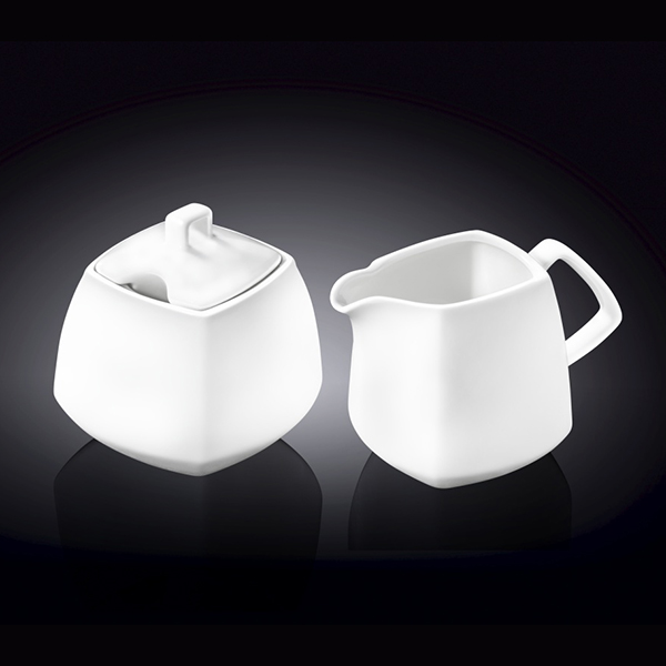 Набор сахарница 340мл и сливочник 310мл Wilmax изготовлены из высококачественного фарфора, покрытого двойным слоем глазировки. Отличаются особой износостойкостью и устойчивостью к ударам и сколам. А белый с оттенком слоновой кости цвет будет эффектно смотреться на Вашем столе.