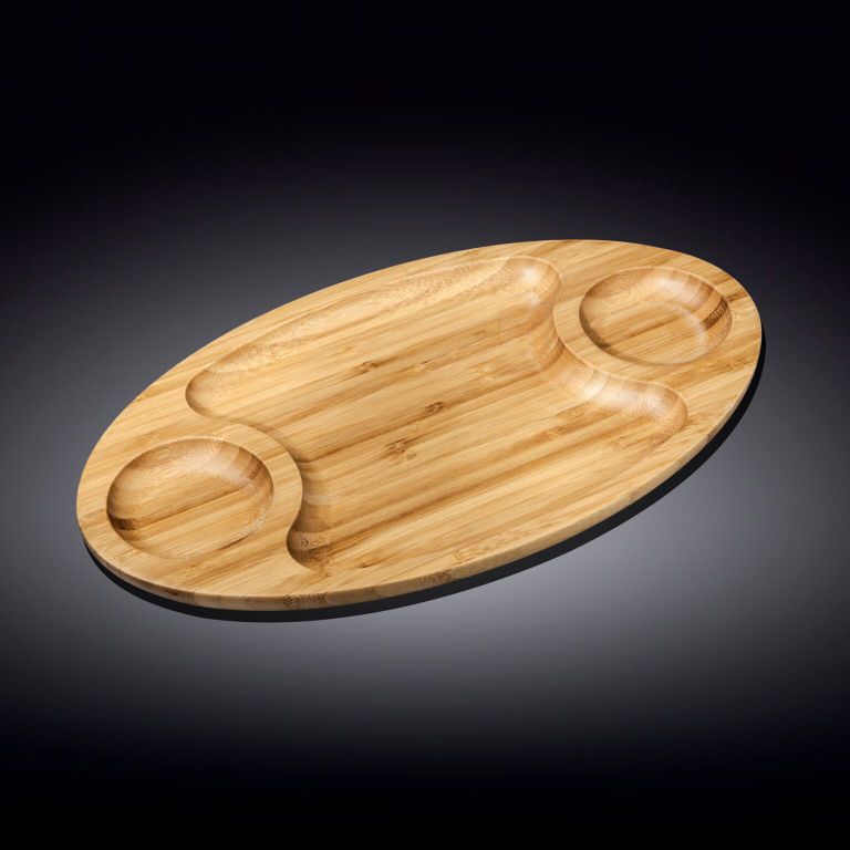 Бамбуковый поднос идеально подойдет для подачи десертов и закусок. Благодаря наличию дополнительных секций с помощью данного подноса можно отлично сервировать стол, подав основное блюдо и гарниры к нему. А в сочетании с фарфоровой посудой WILMAX бамбуковый поднос позволит создать особенную атмосферу легкости за Вашим столом. Ручка делает бамбуковый поднос особенно удобным. Серия посуды из натурального бамбука станет отличным дополнением при подаче кулинарных шедевров, натуральный бамбуковый цвет которой будет превосходно гармонировать с молочными оттенками фарфоровых изделий WILMAX.