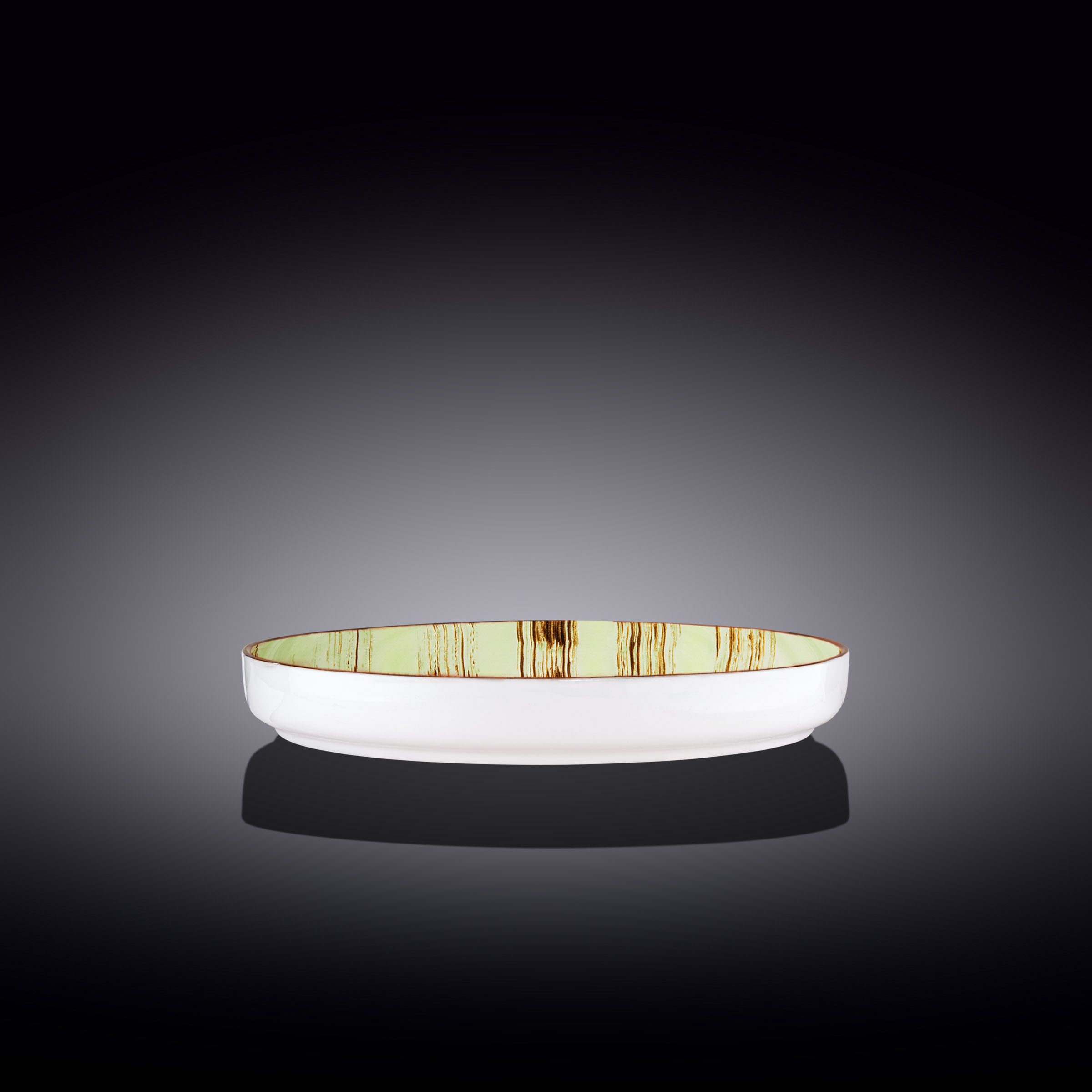 Сервировочная тарелка с высоким бортом из коллекции Color Boom с декором Scratch фисташкового цвета.